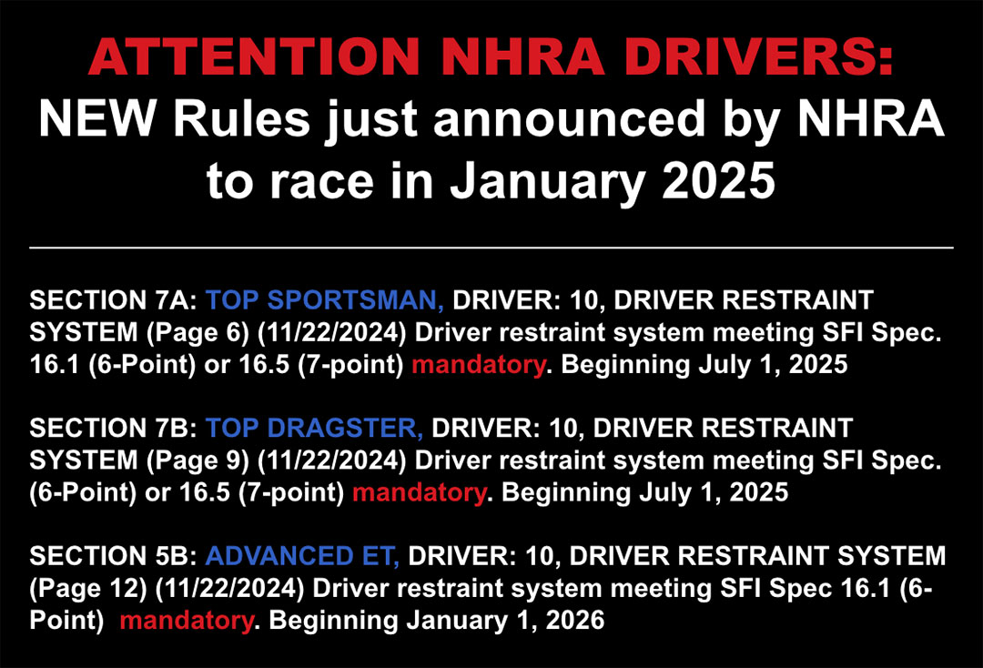 Mandatory NHRA Rule Change Top Sportsman, Top Dragsters and Advanced ET
